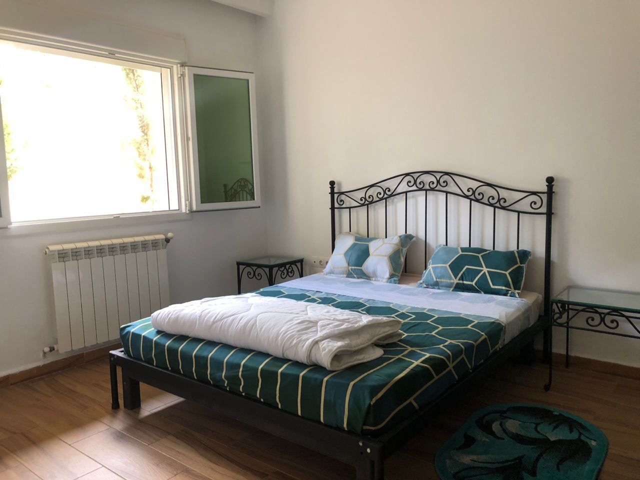 Agence Loue dans Une résidence de haut standing « les Glycines  » , avec parking, salle de sport, gardiennage et gestion de résidence Bureau d’assistance 24/24h, visiophone, caméra de surveillance, ascenseur, Jardin et un air de repos, loue un jolie F4 de 113m²,au RDC , ensoleillé, climatisation, chauffage, parabole central, complétement meublé moderne, grand salon avec terrasse , 03 chambres, salle de bain (douche italienne),WC , cuisine équipée , quartier résidentiel , Libre de suite , pour plus d’information contacter nous .