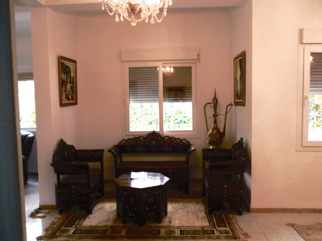 Loue Villa Jolie villa, de 600m²,en F6 refaite, chauffage central , dalle de sol , climatisation , beau jardin avec des allées fleuries, jolie hall d’entrée avec de la mosaïque, garage , meublée ,quartier résidentiel